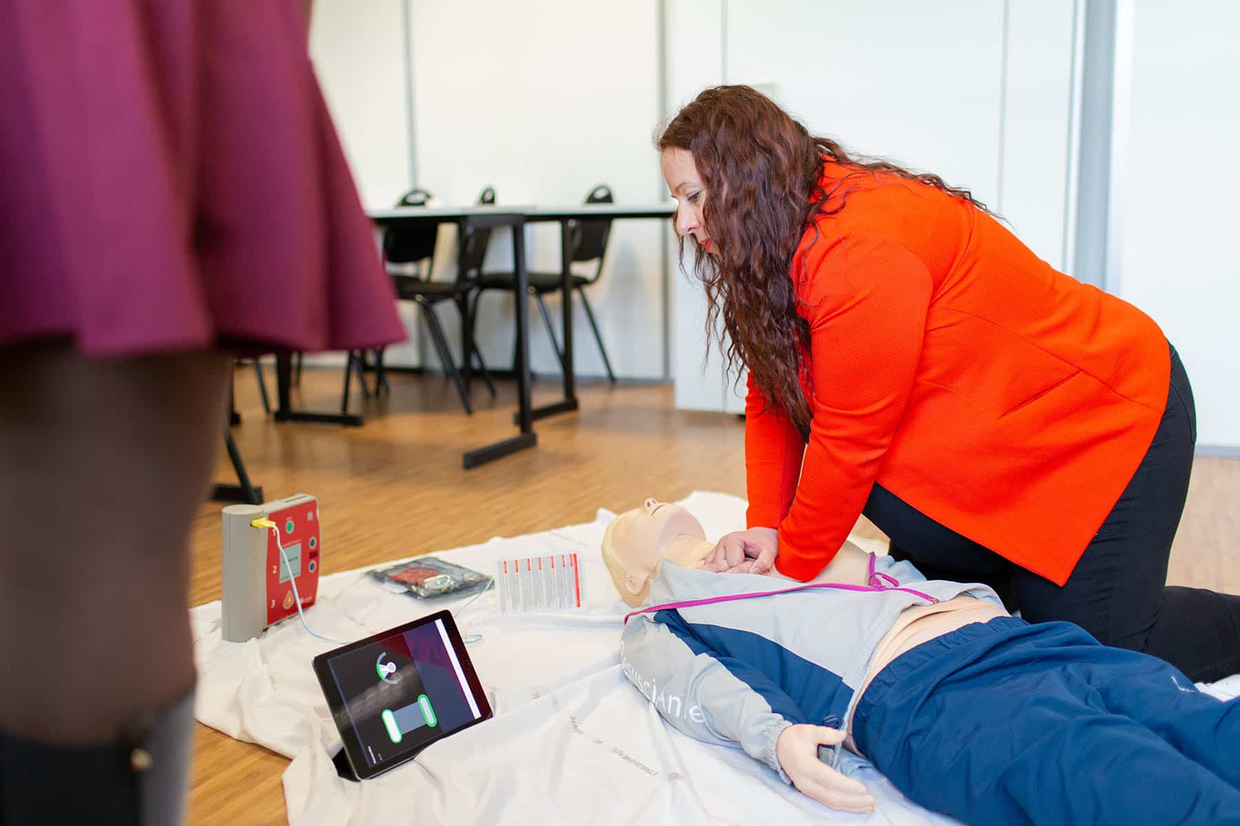 - Ateliers de réalisations pratiques de gestes de survie : réanimation cardio-pulmonaire des adultes et enfants, défibrillation...